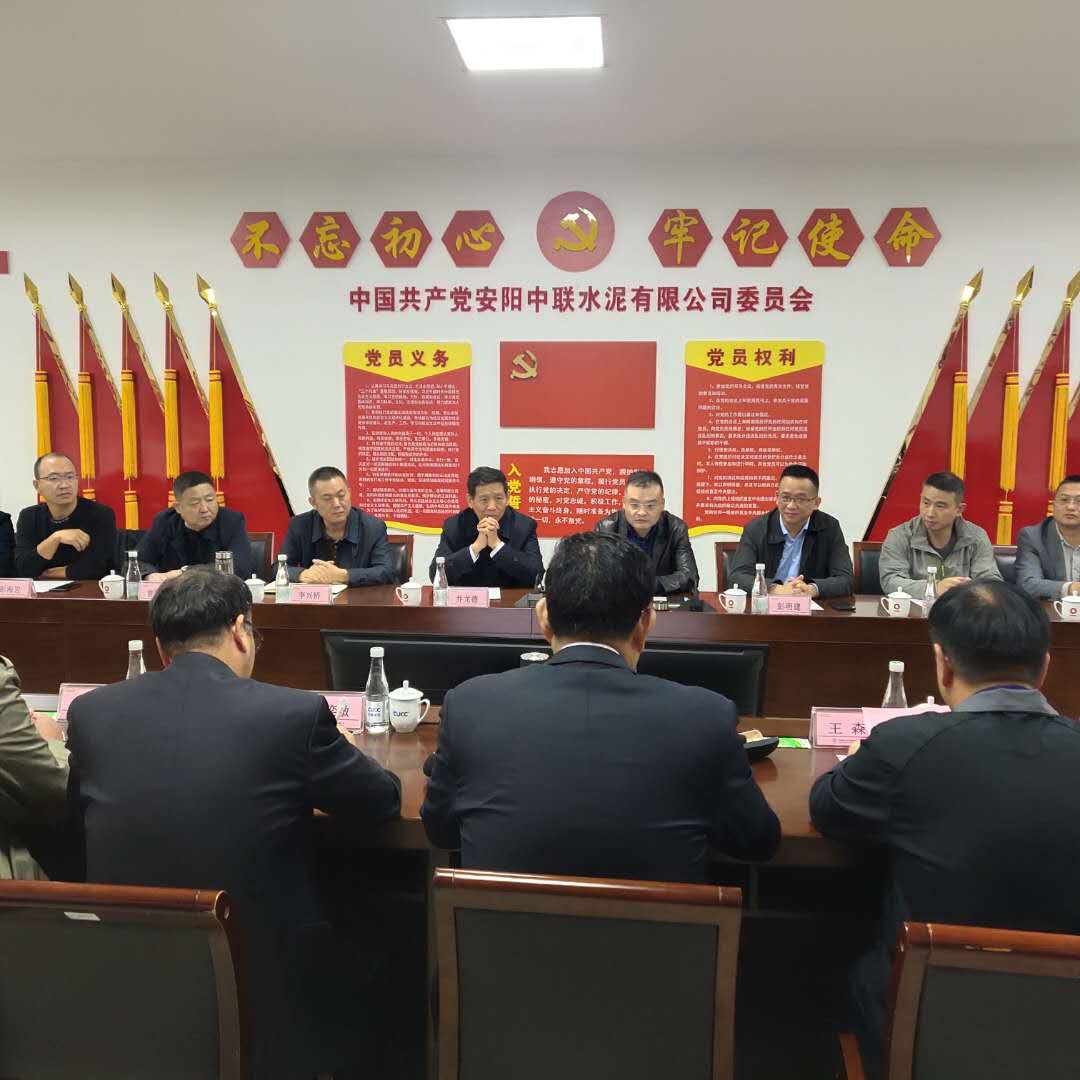 2020年10月14日,中國建筑材料聯合會會長喬龍德及江油市政府一行蒞臨安陽中聯調研工作。河南區副總裁、安陽中聯黨委書記、總經理黃頌高、河南區副總裁劉奕敏陪同調研。喬會長先后實地參觀了生產一線、企業展廳,隨后召開座談會,江油市副市長周世明一行10人、安陽中聯班子成員、中層正職以上人員參加了座談會。